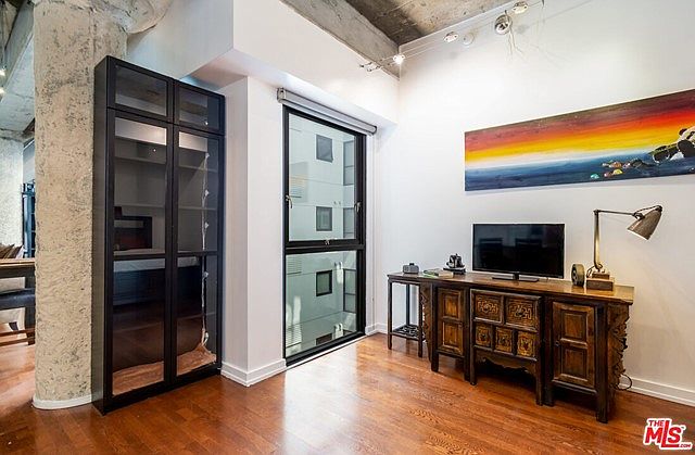 Artsy and creative. This classic live-work unit pairs the beautiful bones of its 1923 origins with an extensive renovation. Converted to lofts in 2005 this home features 12 ceilings, original concrete columns, exposed ac ducting, floor-to-ceiling windows, a roomy outdoor balcony, and a modern kitchen excellent for cooking and entertaining. Grand Lofts, located in the vibrant neighborhood of South Park, is home to LA Live and Staples Center. You are conveniently located to shopping, restaurants, the freeway, FIDM Park, USC, Metro, the Financial District, Wholefoods, and more. Grand Loft residents have access to resort-style amenities and side by side covered parking in the adjacent building Aven. The fabulous amenities include a three-lane lap pool with cabanas, beach volleyball court, basketball half-court, fitness center, business center, multiple BBQ areas, and pet care stations. Aven retail includes, a coming soon Pine and Crane restaurant, Orange Theory fitness, nail salon, and a pharmacy with convenience store and coffee shop.