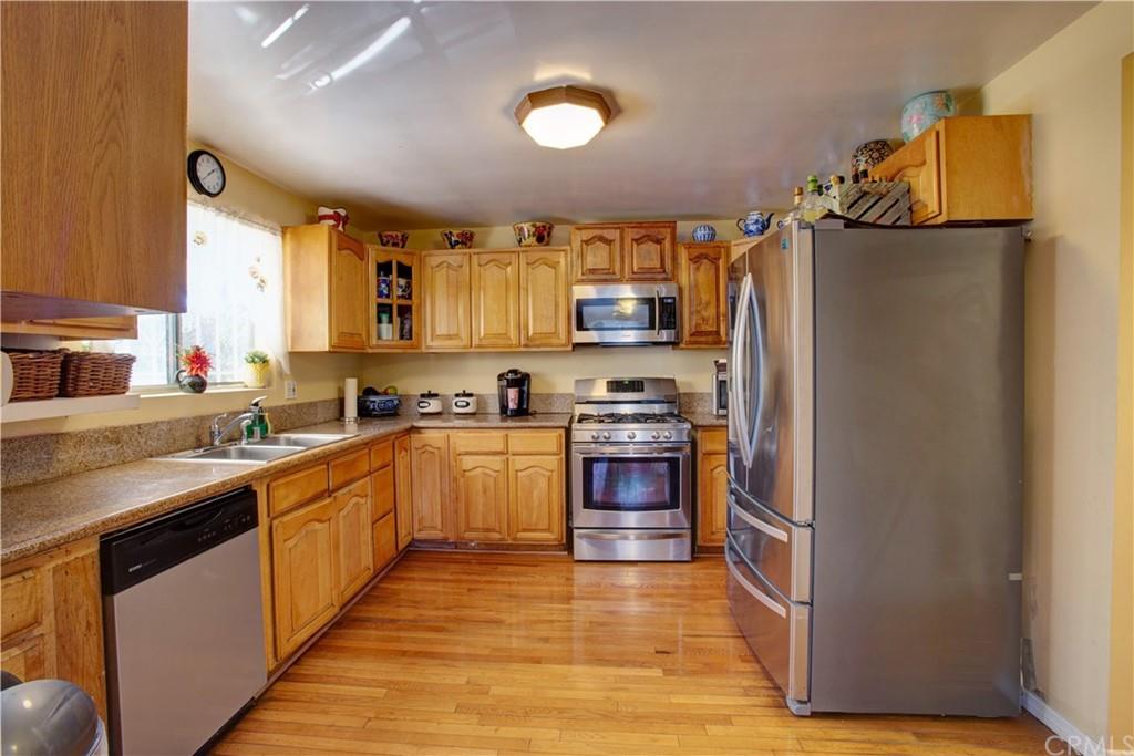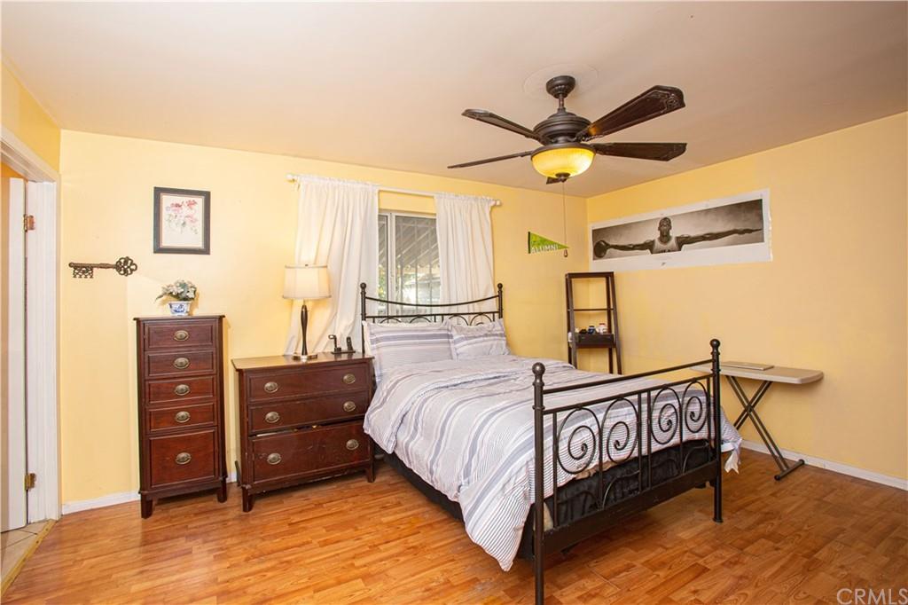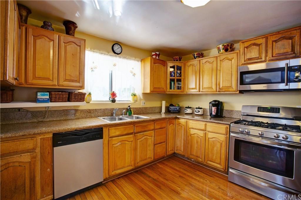 Corner Lot with covered patio spacious front yard mostly cemented with flowering plants, vegetables, and fruit trees. 3 bedrooms and 2 baths. Bright kitchen with maple cabinets and granite countertop. Good size living room and formal dining area with new light fixtures and ceiling fan Hardwood flooring living, dining kitchen, and hallway. All bedroom has laminate floorings. Master bedroom with walk-in closet and upgraded bathroom. All bathrooms have been fully renovated with tile flooring and a countertop with new fixtures. The bedrooms are spacious with an attached garage. Most of the front and sides of the home are cemented. The home is fully fenced with iron and wood. The awning on the left side of the house is where the washer and dryer hook up. Newly painted inside and outside of the home. All new plumbing, electrical, and heating. Close to freeways 2,320 and 110. Has fruit trees in the yard: grapefruit, lemon, persimmon, guava, apples, and others.