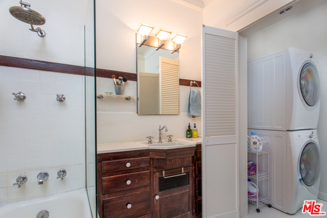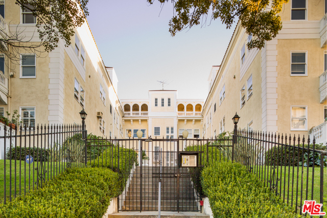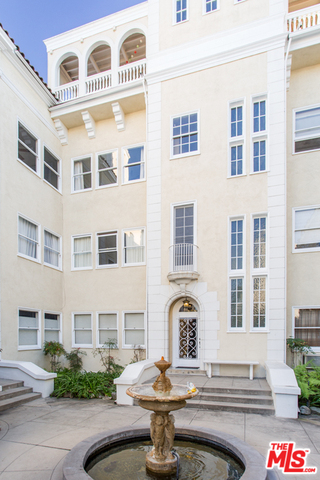 This light-filled condo evokes gracious living in an extraordinary historical Italian Revival complex. Fabulous architectural details make this a truly unique home. Located in vibrant & evolving Koreatown, these delightful units rarely come to market. The spacious living room offers generous E,S exposure via a multitude of oversized windows - curved alcove w coved ceiling, create a warm embrace for relaxation & entertaining. The ensuite master offers a stylishly remodeled bathroom. The 2nd bedroom, w versatile uses, overlooks the interior courtyard w bubbling fountain. Charming kitchen w SS appliances, includes generous cabinetry & additional pantry room. Dining room, in unit laundry, high ceilings, original wood flooring, updated powder & large individual storage area, all contribute to making this magical home so inviting. Private garage. Enjoy common area BBQ, billiards room & sunroom. Koreatown is one of the hot new LA hoods, perfect for its central location, shops & restaurants.
