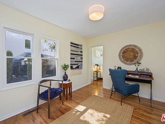 Tap into the potential of this vintage home in prime Los Feliz. In the living room find wood flooring, a decorative fireplace with Batchelder tile, and a large window welcoming showers of natural light. The updated kitchen features abundant storage/counter space, stainless appliances, and an adjacent bright laundry room. Two bedrooms plus a handy office/den make it easy to find life-work balance here. The grassy front and side yards beckon with privacy and plenty of space to relax, entertain, and play. The detached garage is ideal to store extra gear as well as 2 cars. This coveted location offers shopping, dining, and recreation close by at Gelsons, Trader Joes, Momed, Hail Mary, Proof Bakery, LA River Bike Bath, and more.