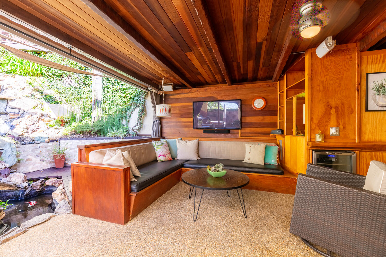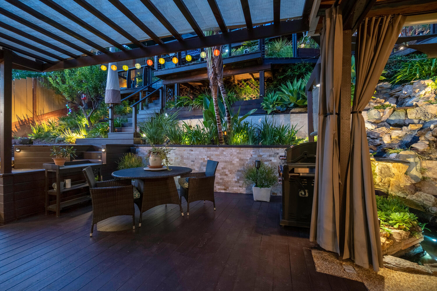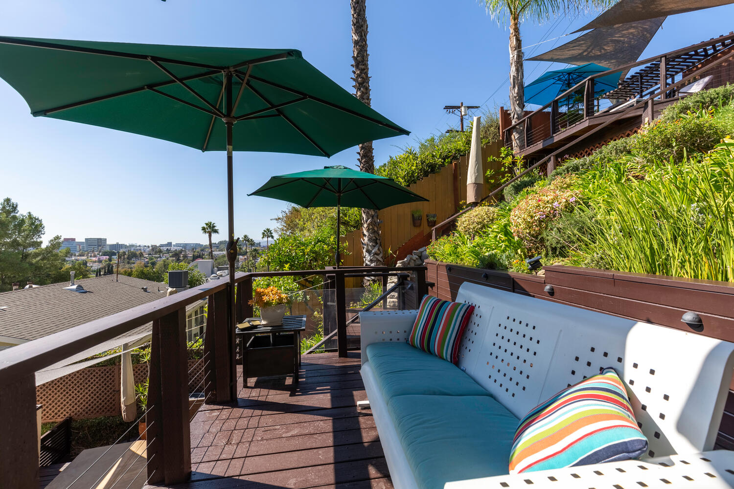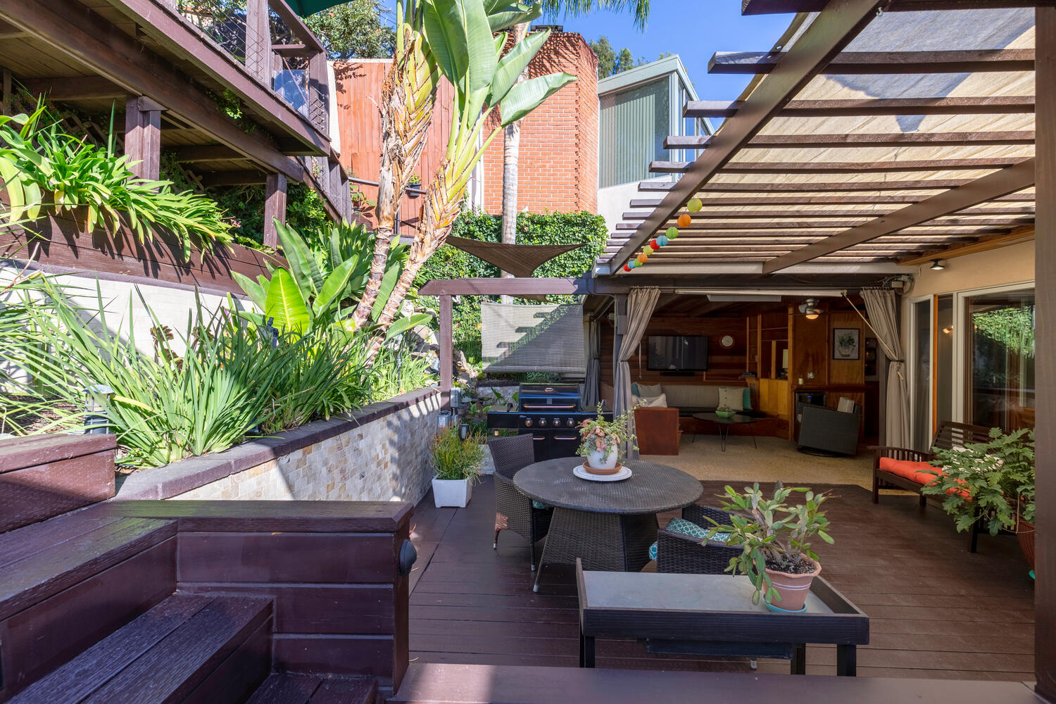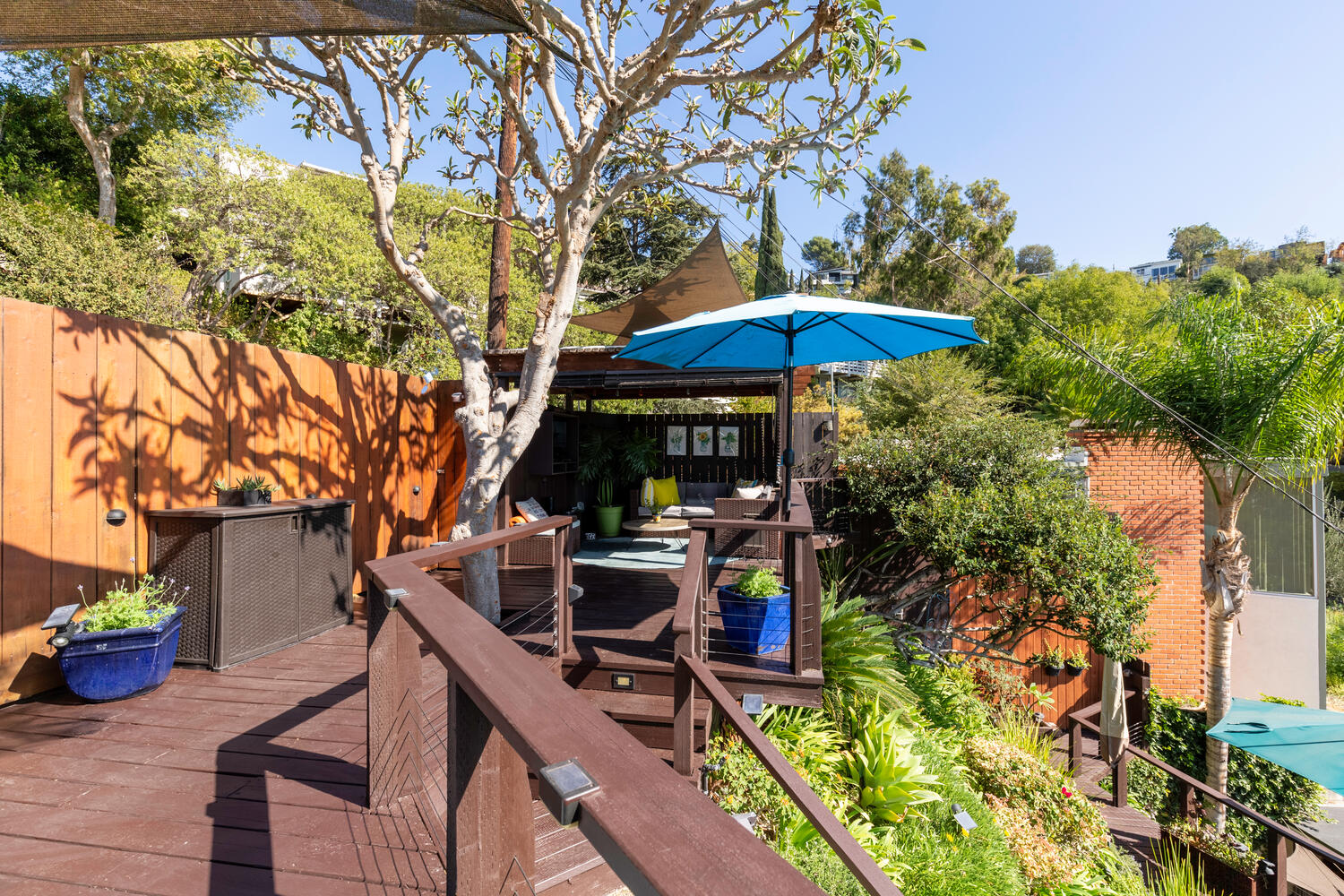 Your Master suite features a walk-in closet with custom cabinets and drawers along with a sit-down vanity. Step outside to your inground spa where you can relax day or night. Your outdoor living area is just as expansive as your indoor, with flat-screen TVs on the lower and upper decks, a built-in mini-fridge, surround sound, a BBQ, waterfall, and automatic zoned sprinklers. Adding the cherry on this home you will find ample storage in the separate laundry room and off the 2-car garage. Perched next to one of the many staircases in Los Feliz and located to a vast array of restaurants, grocery stores, and shops you won’t ever have to venture far from home.