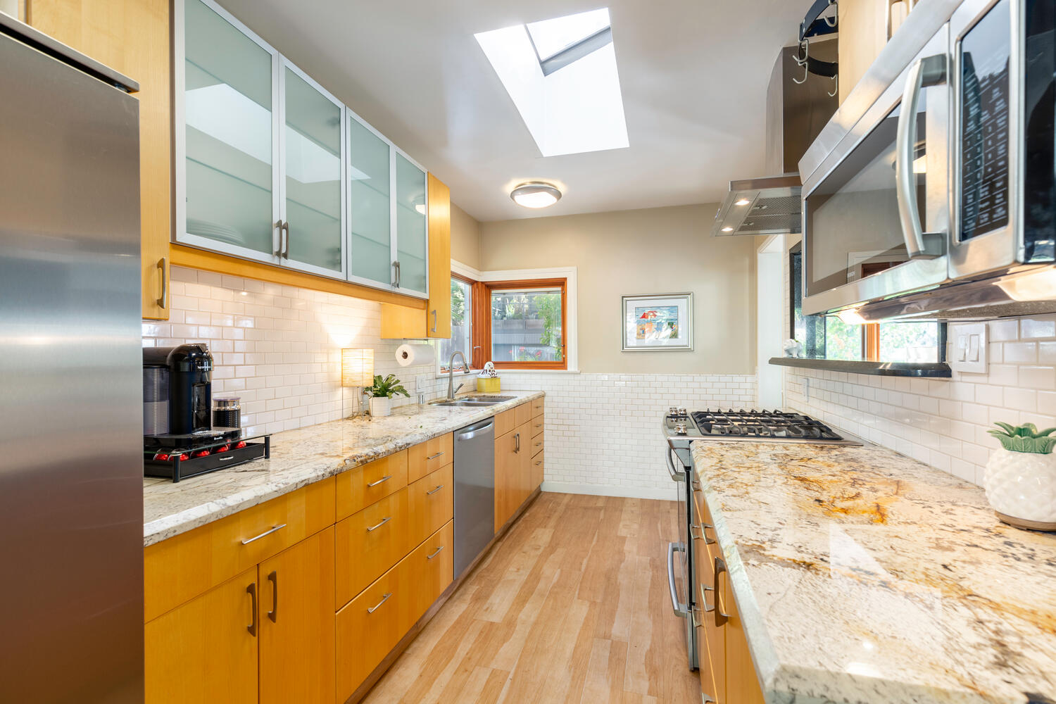 In the highly desirable Franklin Hills neighborhood sits a beautiful and private, street-to-street oasis like none other. Step inside this exceptionally loved and well-maintained home with custom Pella windows with built-in blinds, skylights that illuminate the kitchen and bathrooms, and expansive outdoor living/entertaining areas which provide a relaxing escape from a long day.