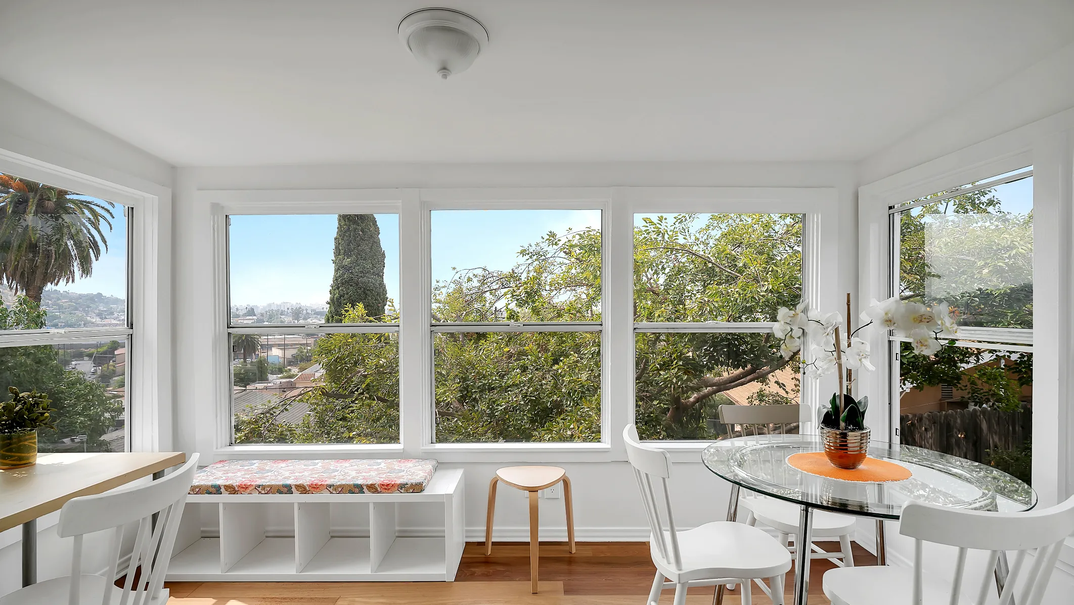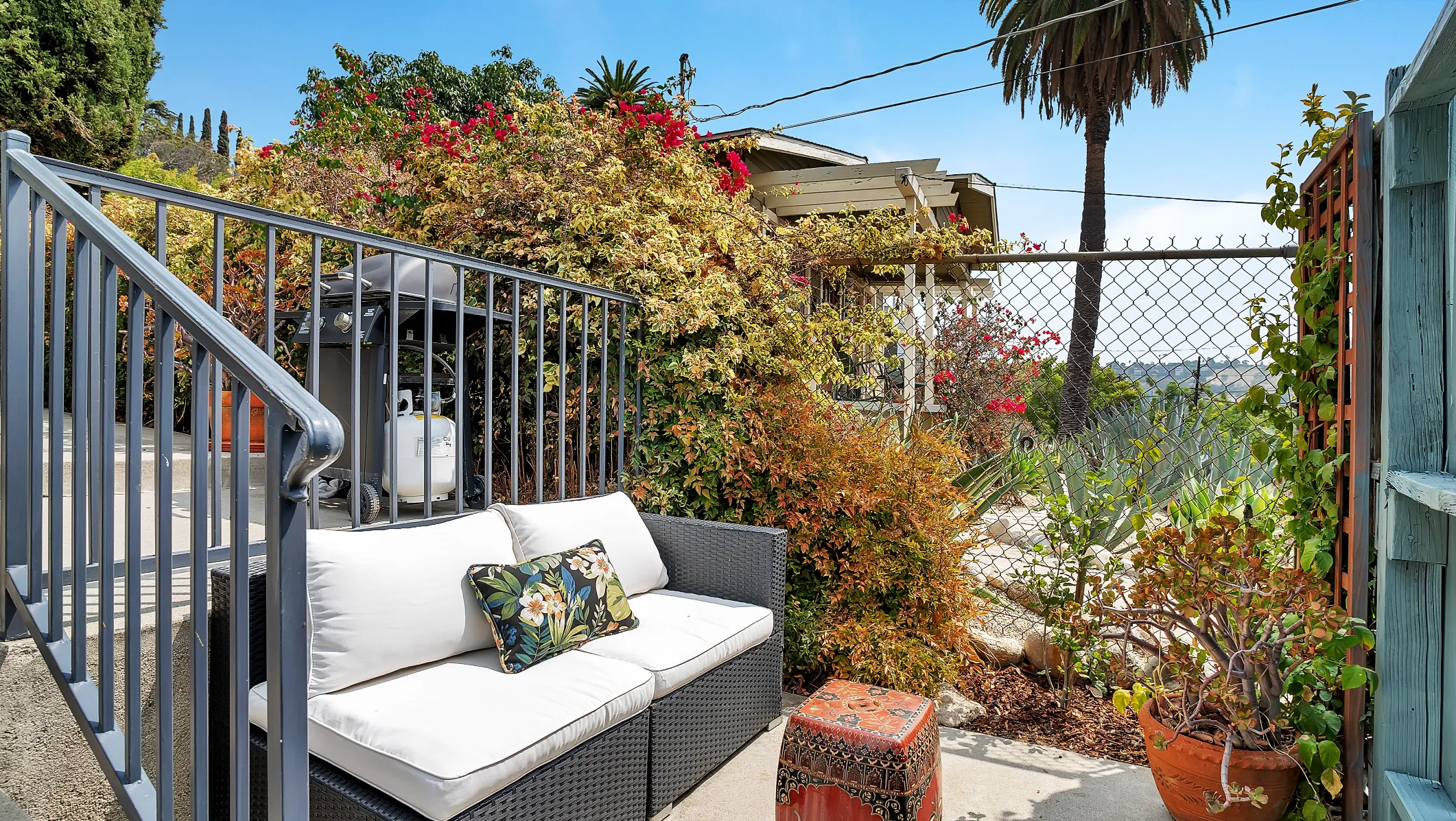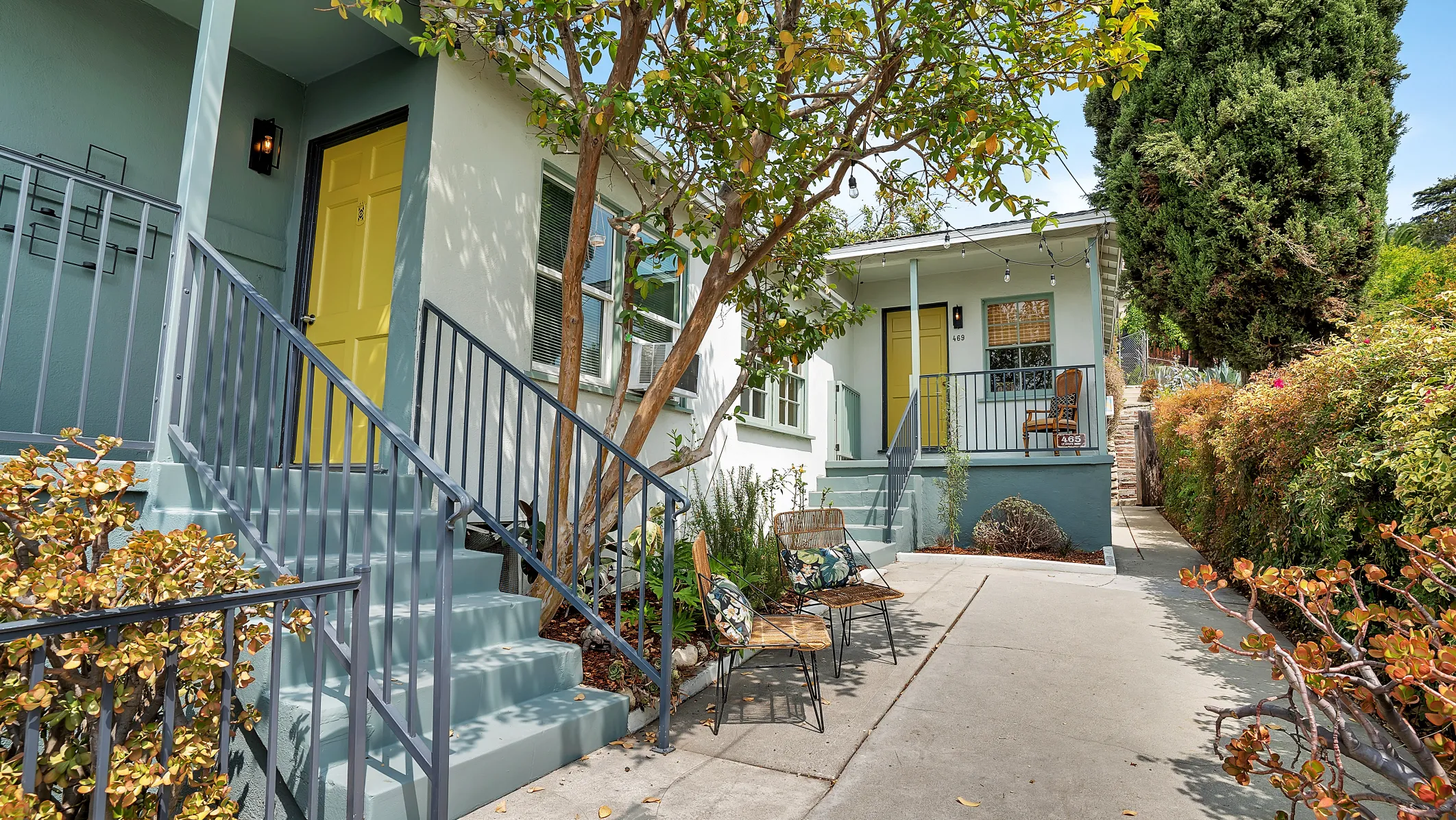 This special, chicly unique NELA triplex offers a wonderful opportunity to own your own compound complete with four 1-car garages! This two-structure property features all the essentials and space you could ever want and need with potential future rental income! Walk up past the tropical flowering Plumeria tree and step into the front unit which features 2 bedrooms, 1 bath, with elevated views from the cute vintage kitchen and home office/dining area. Behind this unit, you will find an adjoining 1 bed, 1 bath pad perfect for guests! At the top of the grounds sits a lovely 1927 California bungalow with hints of Craftsman vibes. This free-standing home has 2 bedrooms, 2 baths, gorgeous views, Central A/C, tons of gardening potential, direct parking and to top it all off, a walk-out basement studio for all your creative endeavors. Each home on this property boasts its own private outdoor oasis where you can peacefully relax or gather with friends after a long day. Close to everything LA has to offer. This is the one you have been waiting for!