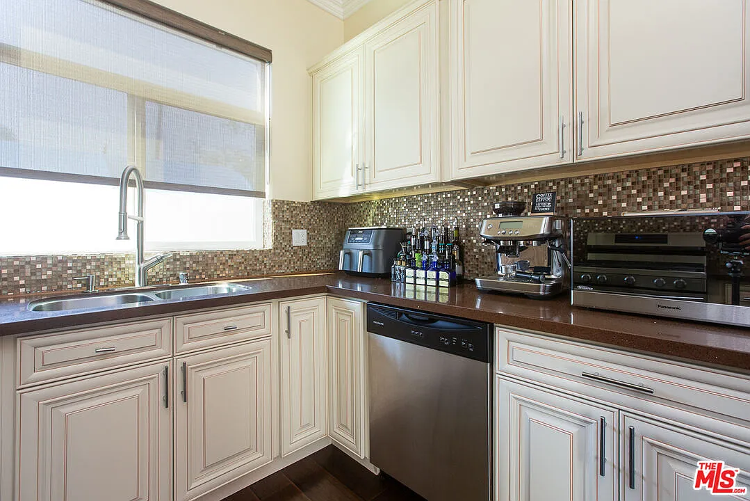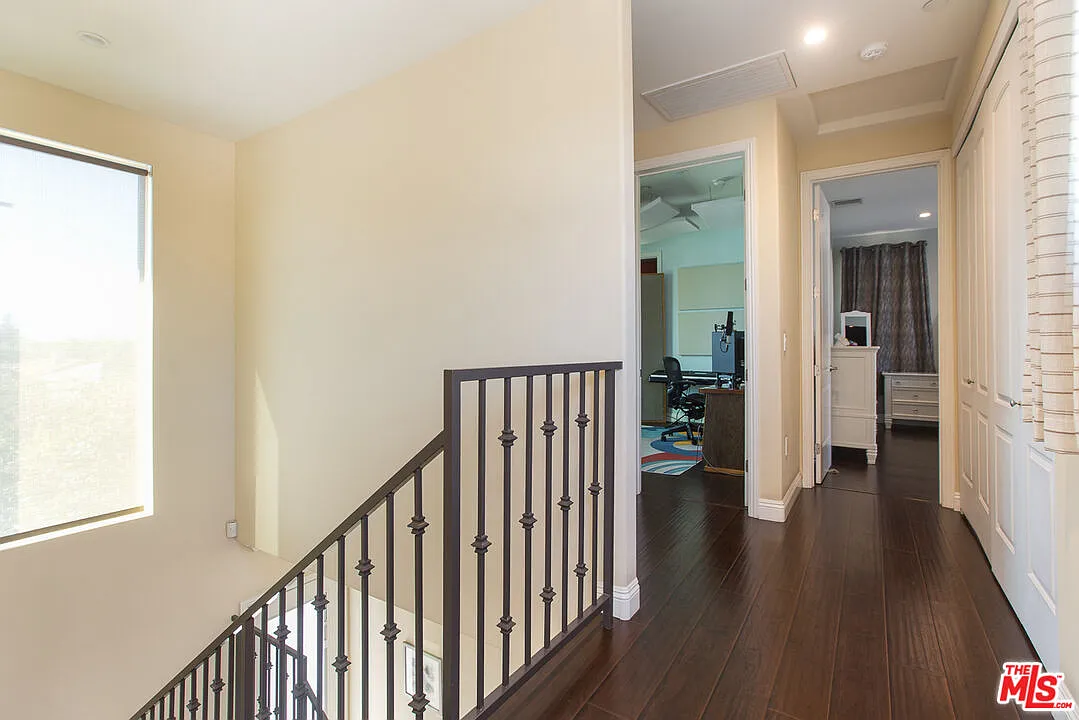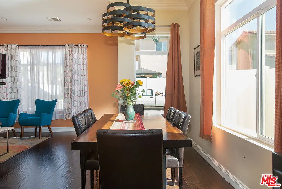 Step inside and feel the light hit just right. Sun streams through soaring 12-foot ceilings, while custom UV-blocking shades let you set the perfect brightness and temperature. The kitchen, with upgraded appliances, opens seamlessly to the living area - perfect for quiet mornings, casual dinners, or entertaining friends. Downstairs, a bedroom and full bath provide flexible space for guests, a home office, or family. Upstairs, three spacious bedrooms feature a primary suite with a private balcony, a walk-in closet plus an extra custom-built closet, dual sinks, and a deep soaking tub perfect for relaxing and recharging. Outside, the finished patio is ready for barbecues, relaxing evenings, or weekend gatherings. Ring cameras offer peace of mind, and the paid-off Tesla solar system keeps energy costs low. A two-car garage with an EV-ready outlet and additional custom storage completes this special residence. Tucked at the end of a quiet way, the home provides privacy, minimal noise, a quiet grassy retreat nearby, and easy guest parking steps away. Nestled in vibrant North Hollywood, you're minutes from NOHO West, the NoHo Arts District, restaurants, theaters, galleries, nightlife, and everyday conveniences all with easy access to transit and the city. This is one of those homes that truly wows in person. Where else can you find a 4-bedroom, 3-bath home for under a million?