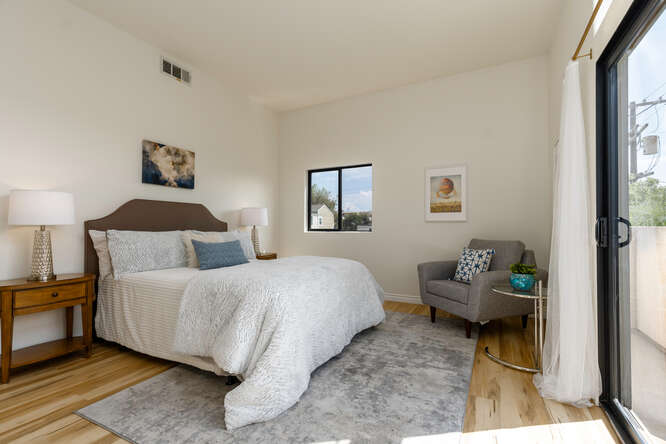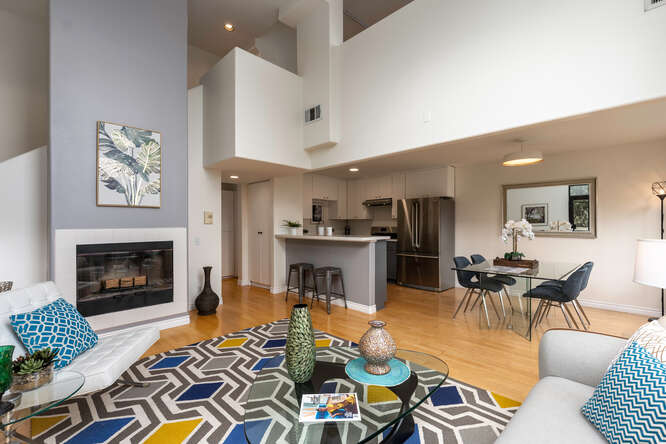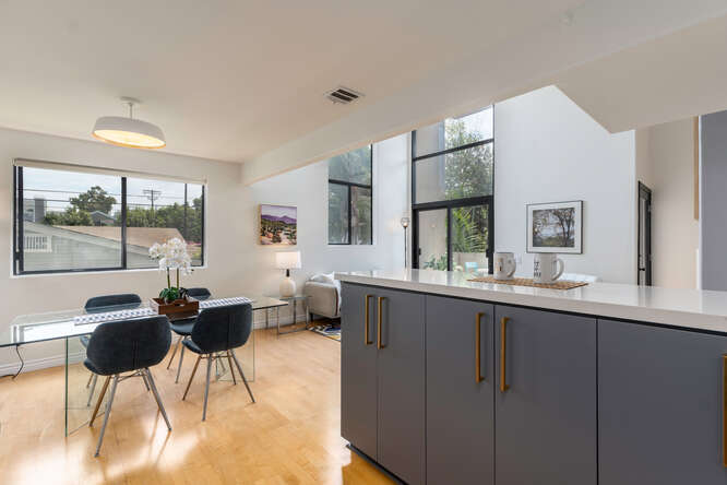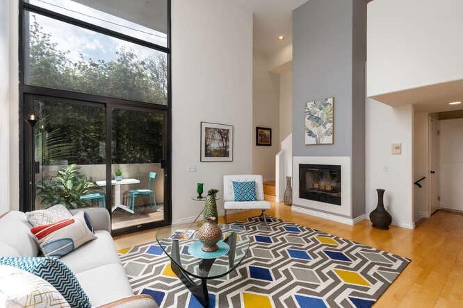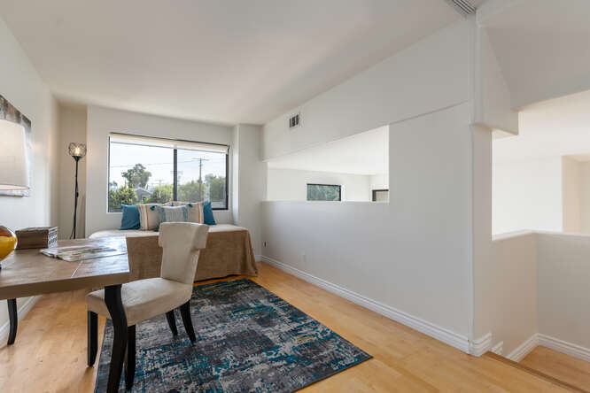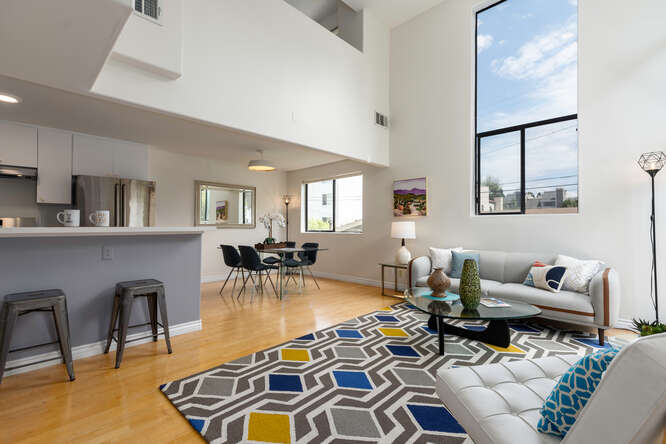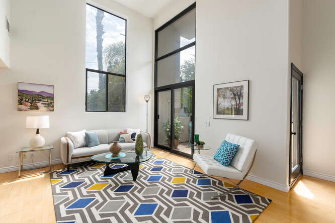This dramatic tri-level architectural townhome is like nothing else on the market. Located in the desirable Palms neighborhood this home features 2 bedrooms, 3 updated baths, and a multipurpose loft/bonus room. This unit is flooded with natural light thanks to its soaring ceilings and abundance of windows. Its other special features include hardwood floors, recessed lighting, a gas fireplace, 2 balconies, new AC, a laundry room, ample storage space, a skylight, gated side-by-side parking, and extra storage in the garage. The complex just installed and paid off the new roof. Less than 1 mile from your favorite Culver hot spots and restaurants, Sony studios, a few blocks from the new metro, short drive to the beach, freeways and downtown. You can't ask for a more convenient location. Title shows the property as a 3 bedroom, 3 bath.