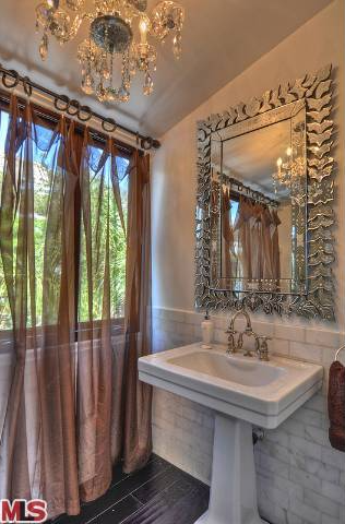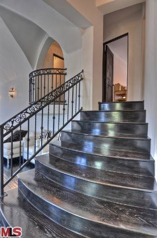 Soaring high ceilings, hardwood floors throughout, ornate stone fireplace, French doors, Carrera marble bathrooms, steam shower, claw foot tub, and designer chandeliers are just a few of the unique features of this sexy property. The high-end kitchen features stainless steel Wolf appliances. There’s a private front & backyard, skyline views inside and out, recessed lights, custom iron railings and a charming Romeo & Juliet balcony. Complete with an alarm system this is an Old World Hollywood Home is just the ticket for the perfect buyer.
